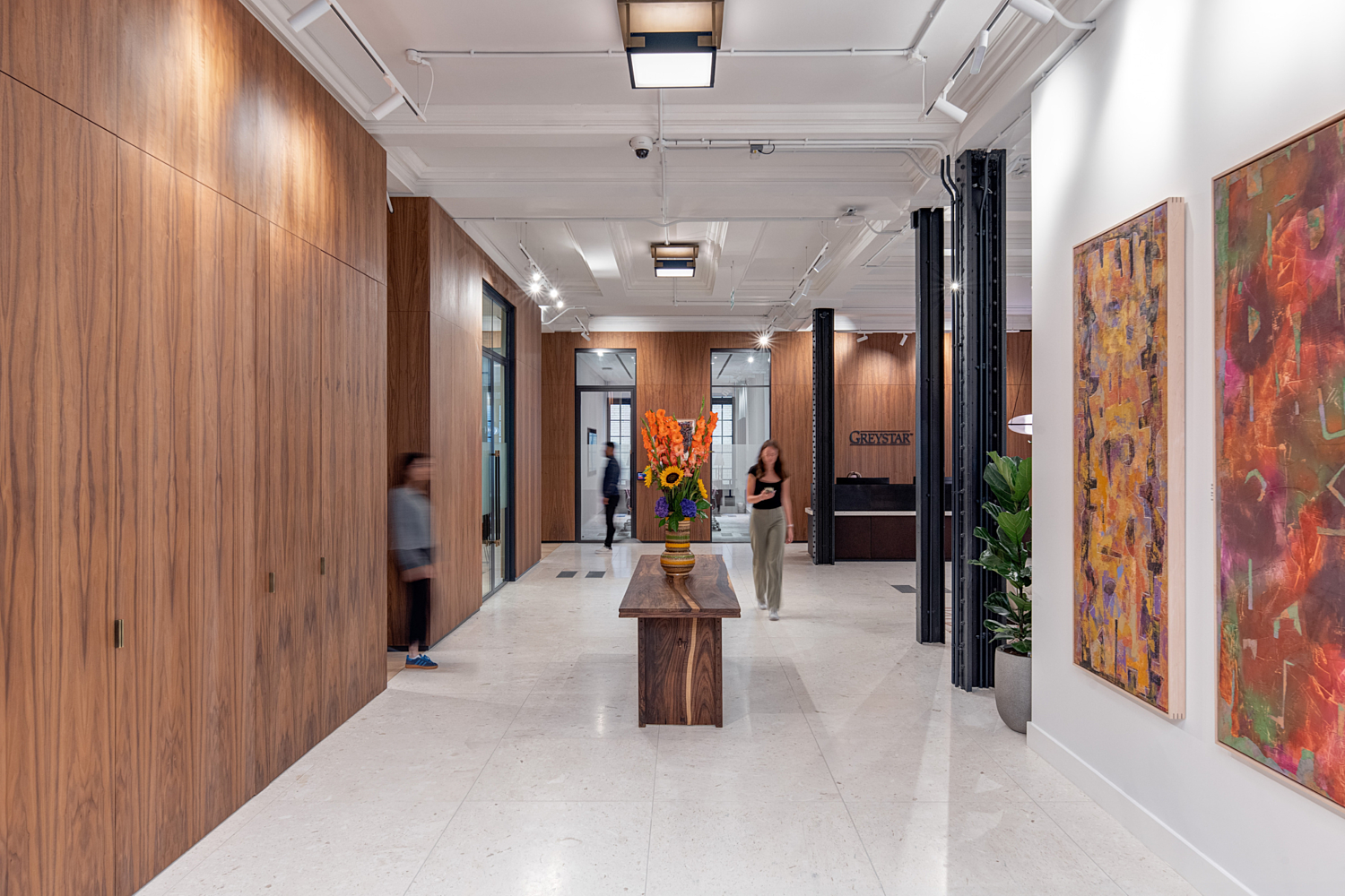 Greystar's new dynamic workspace blends The Gilbert's character features and a modern design to create a sophisticated, high quality office in keeping with their offices around the world.