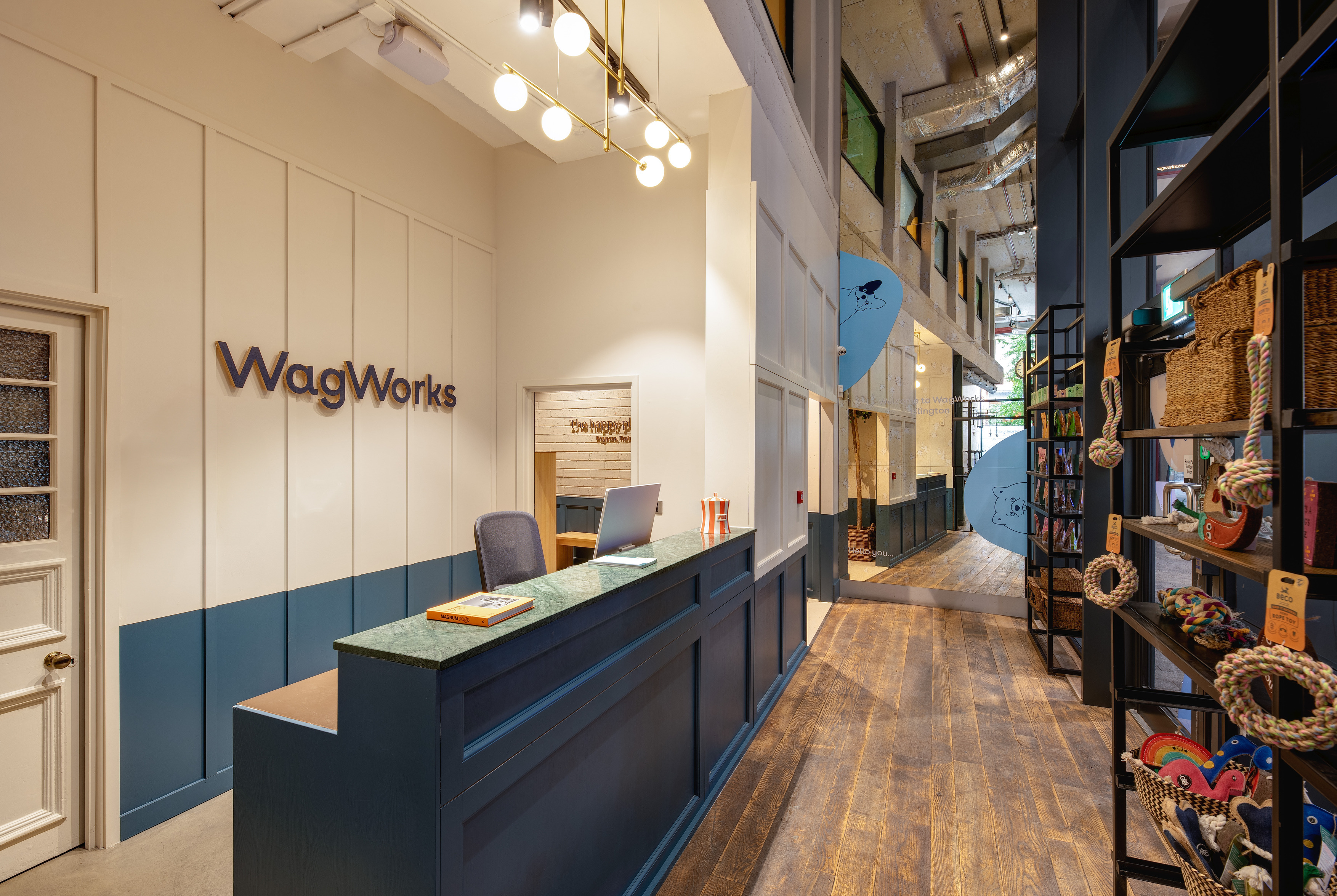 After successfully fitting out WagWorks’ Fulham club, we were invited to deliver their next location in Islington Square. This 8,000 sq ft club was designed to offer local city dogs everything they need under one roof: daycare, healthcare, grooming and training.