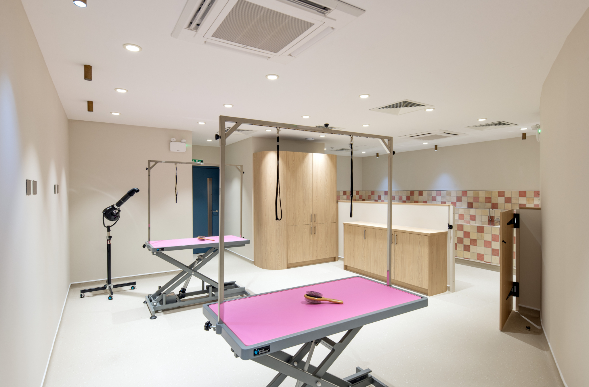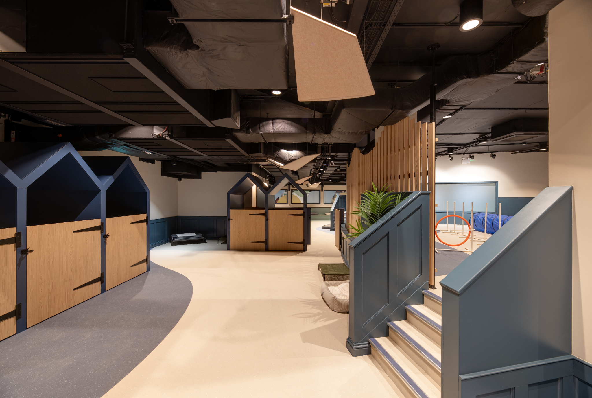Converting the space into a specialist dog care hub required a layout that supported WagWorks’ holistic care model. The space now includes a grooming studio, washing room, three indoor parks, rest stables, a vet room and a dedicated scent den - a stimulating space where dogs can engage their natural sniffing instincts. Each area was planned to help dogs move safely, rest properly and engage in structured play throughout the day.